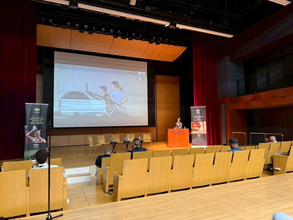 普段SPOでは熱中症について学ぶことが多いので、今回のカンファレンスで低ナトリウム血症に関する発表を聞けたことは新鮮でとても勉強になりました。世界陸上の現場でも、予想外に涼しかったり、湿度が低かったりすると、水分摂取量と発汗量のバランスが崩れ、低ナトリウム血症につながる可能性があることを実感しました。熱中症とはまた異なる視点から水分補給の戦略を考える機会となりました。