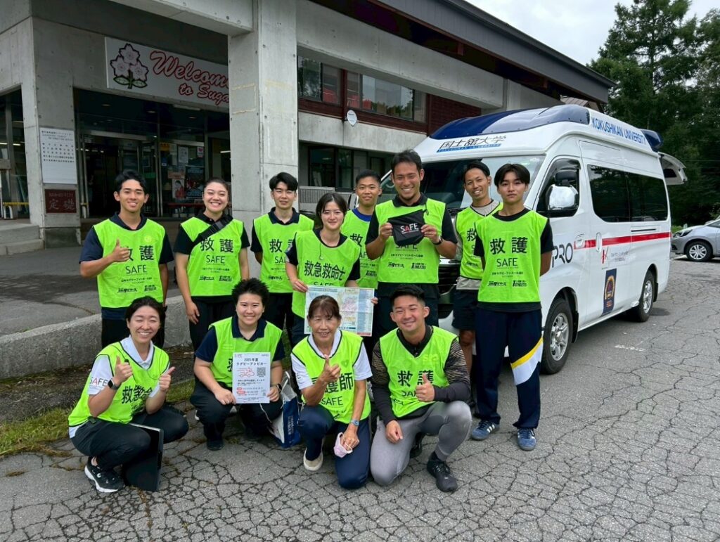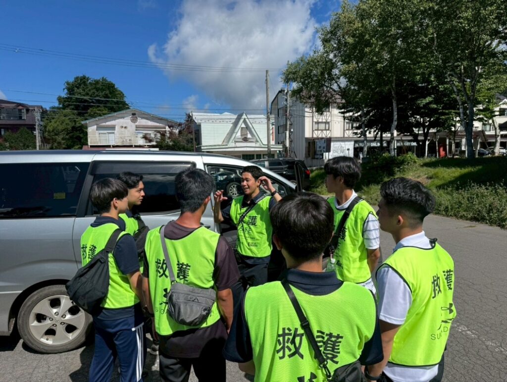 ラグビーアンビカ―の他にもマンパワーが必要な場合に搬送の補助をする救急救命士やインターン学生が乗車する搬送補助車も配備され、ラグビーアンビカ―や上田広域消防、菅平高原クリニックと連携し、菅平高原部での緊急時に安全安心を提供できる救護体制の構築を目指して活動を行いました。