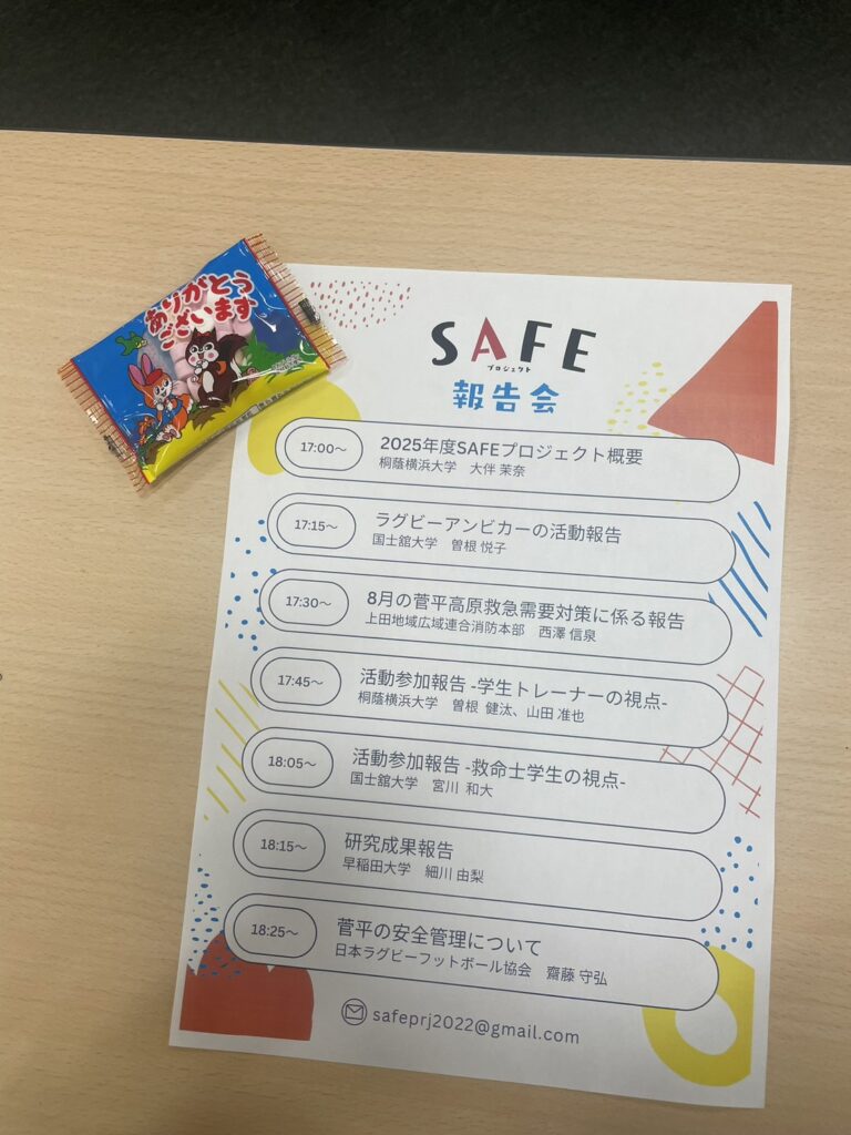 菅平での活動と報告会を受けてSAFEプロジェクトやスポーツセーフティに対してこれから自分がどんな形で貢献できるか改めて考えるきっかけになりました。